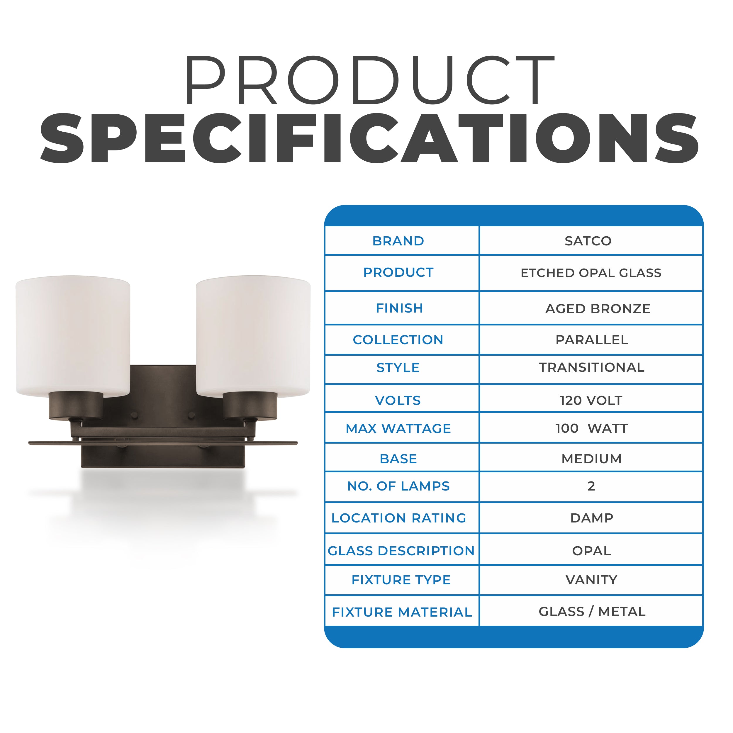 NUVO Lighting 60/5302 Fixtures Parallel - 2 Light, Vanity with Etched Opal Glass, E26-Medium Base, 120 Volt