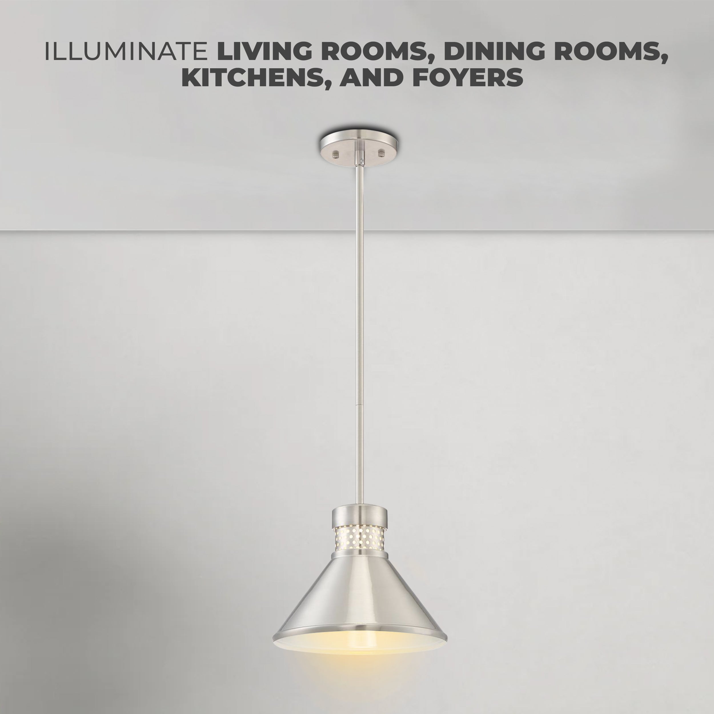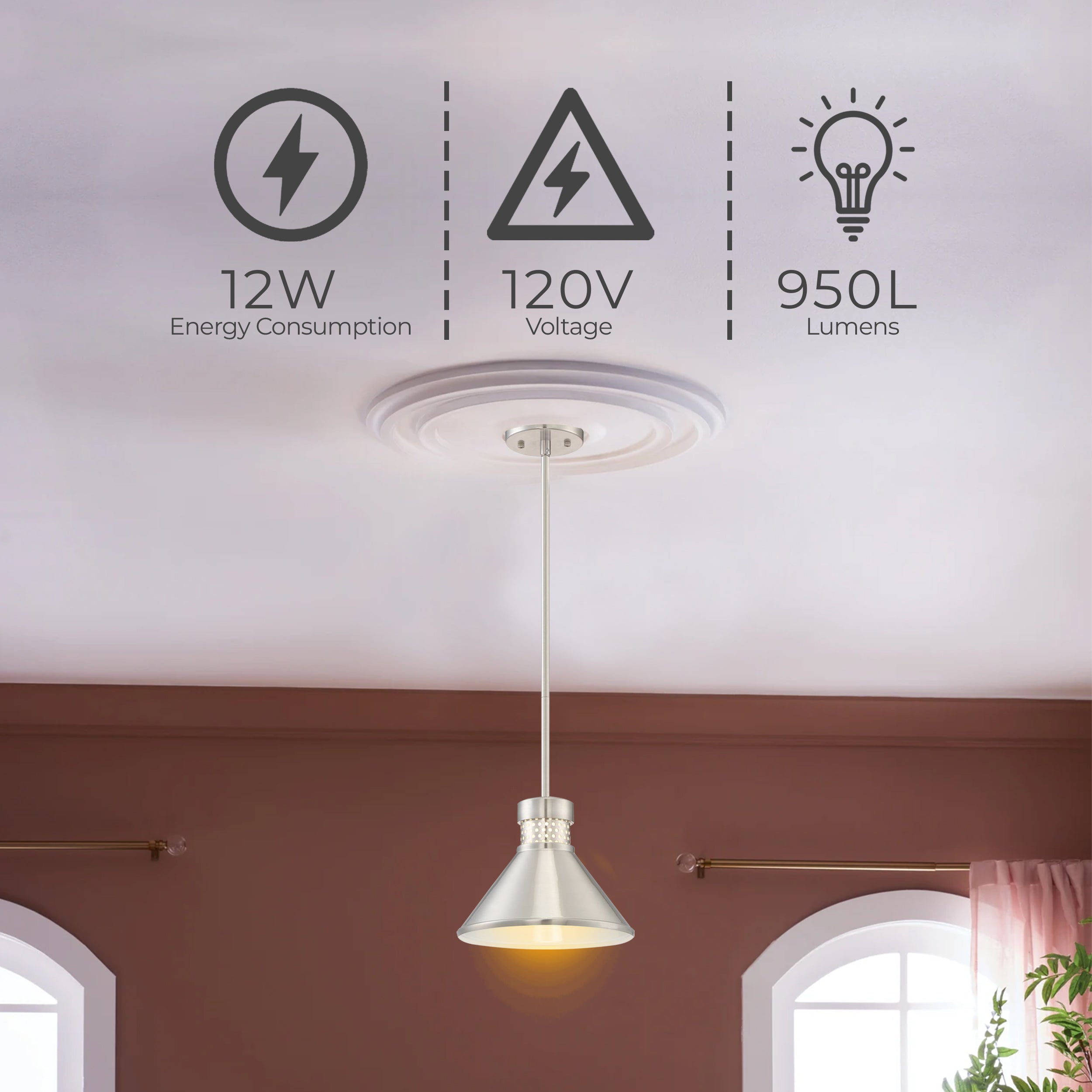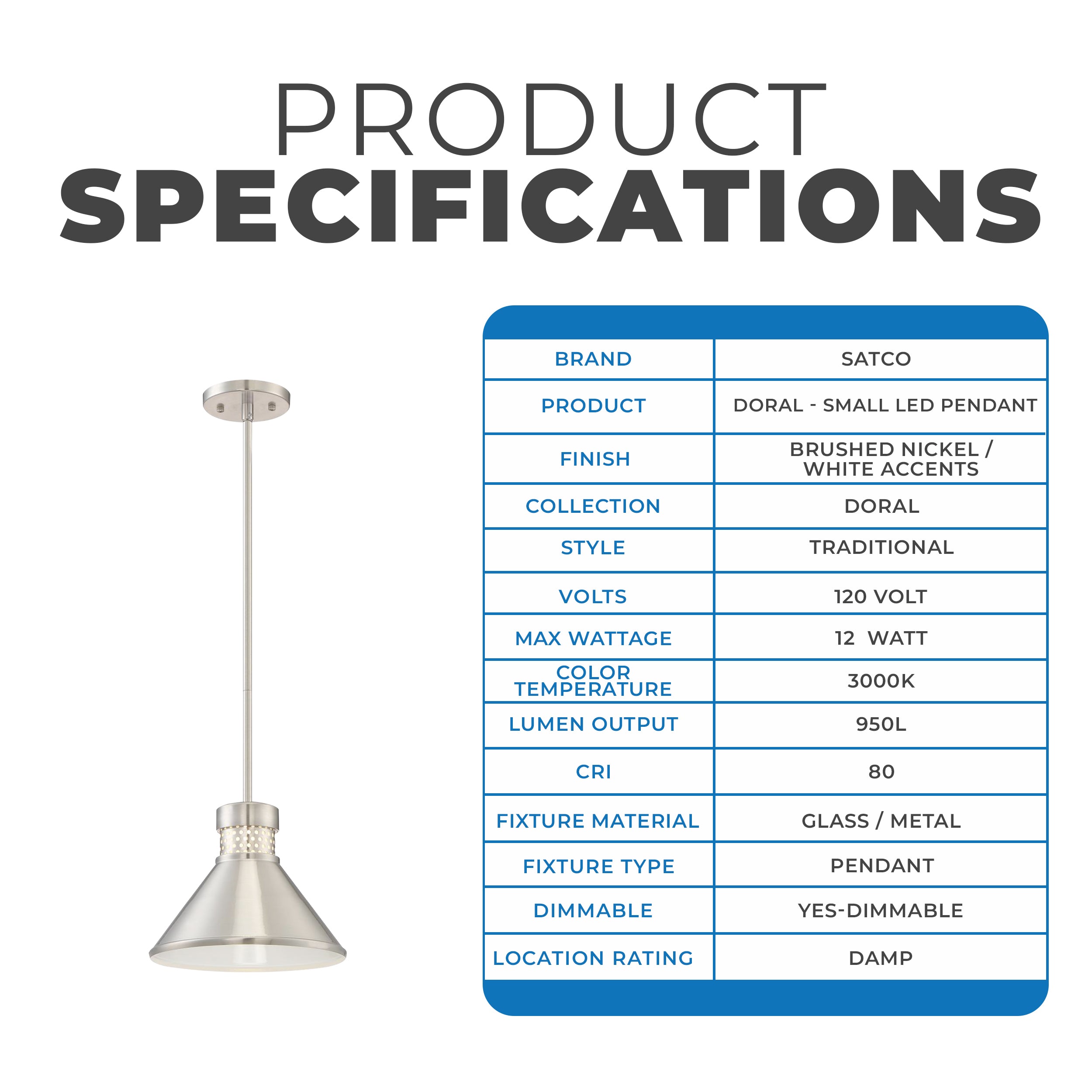 NUVO Lighting 62/851 LED Fixture Doral - Small Pendant, Brushed Nickel / White Accent Finish, 12 Watt, 3000 Kelvin, Warm White, 950 Lumens, Connector Base, 120 Volt, Dimmable