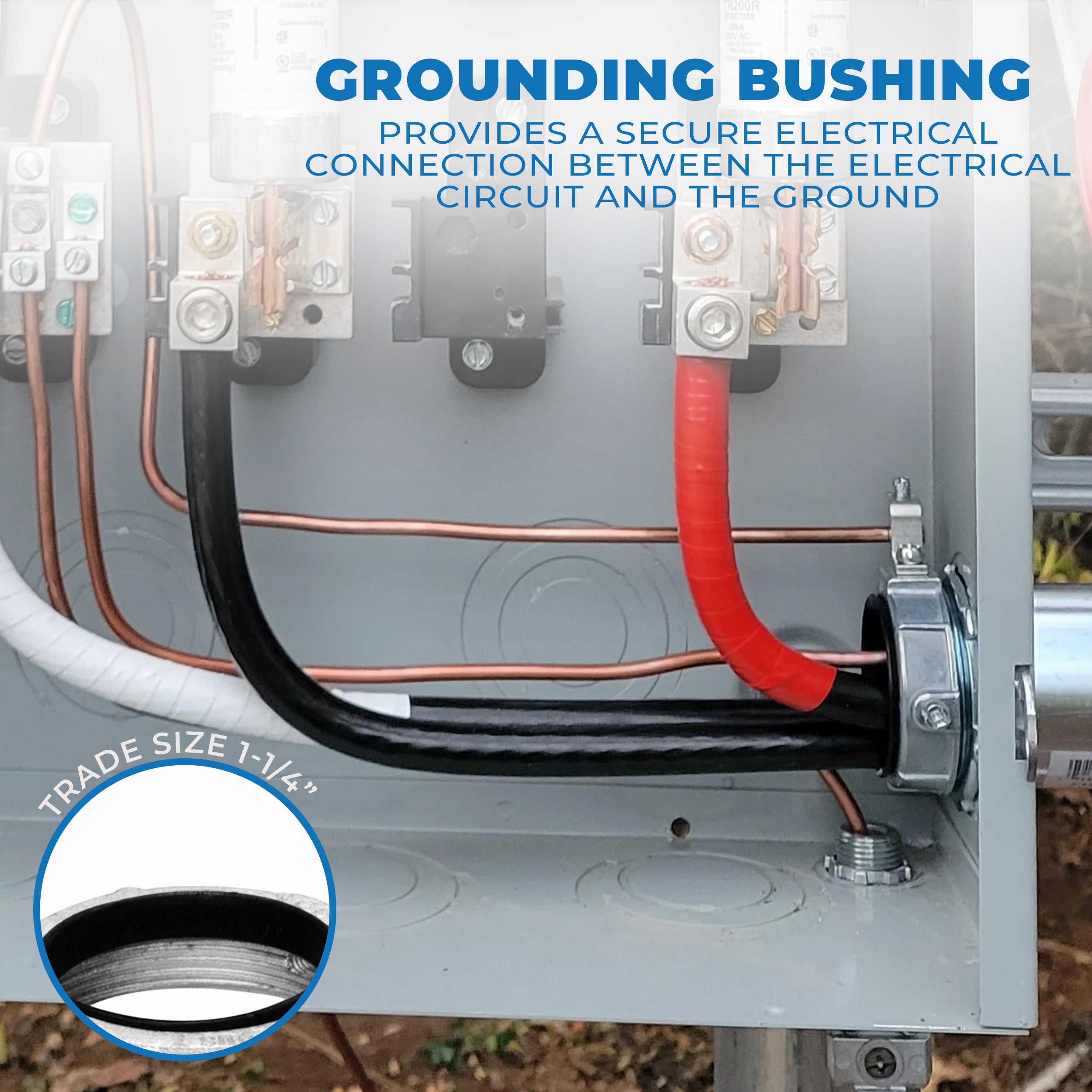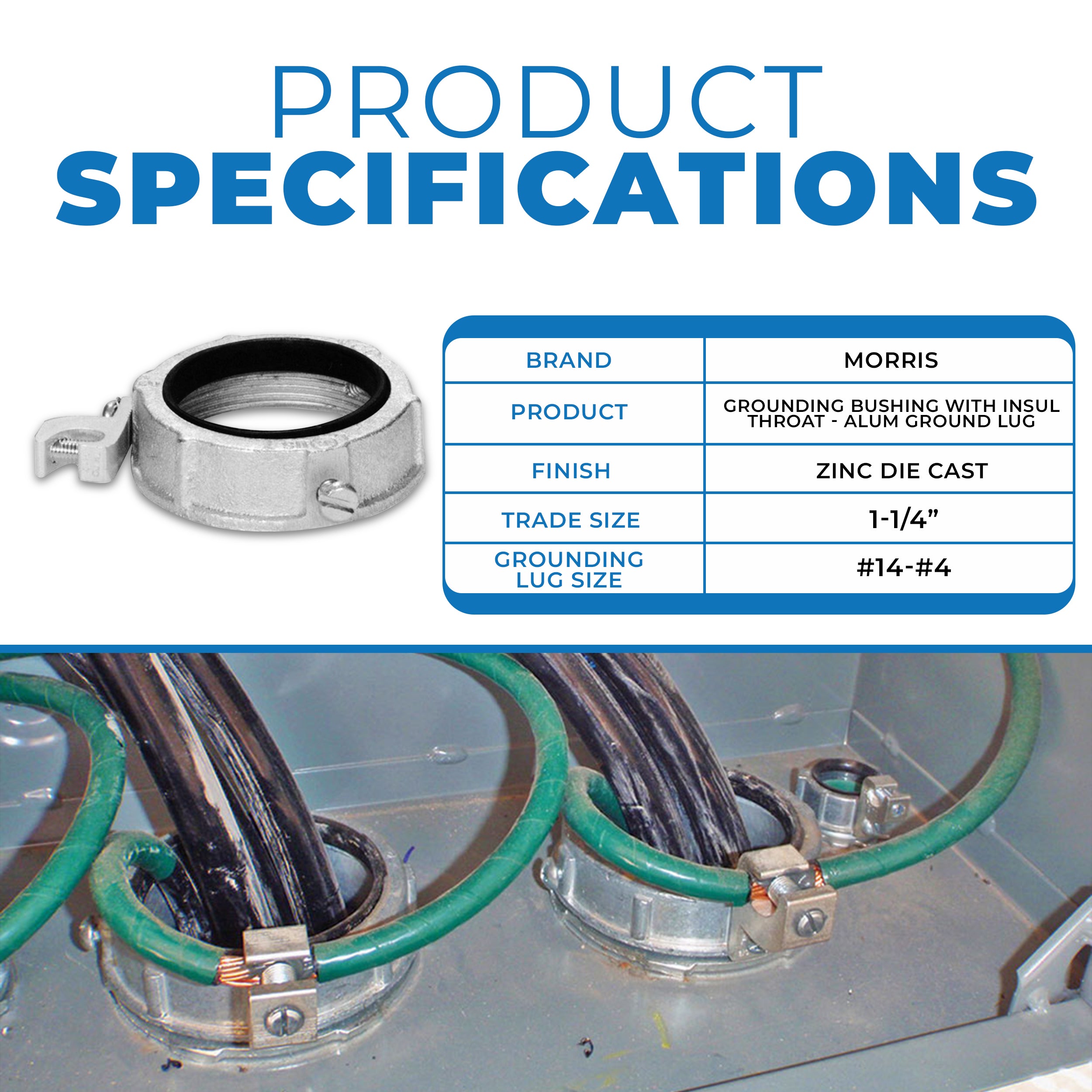 Morris Products 14574 Conduit Bushings with Ground Lug and Insulated Throat 1-1/4 inch - Zinc Die Cast - Conduit Bushings are Used with a Locknut to Terminate Threaded Rigid and IMC Conduit to a Box or Enclosure and Connect to Ground Electrode.