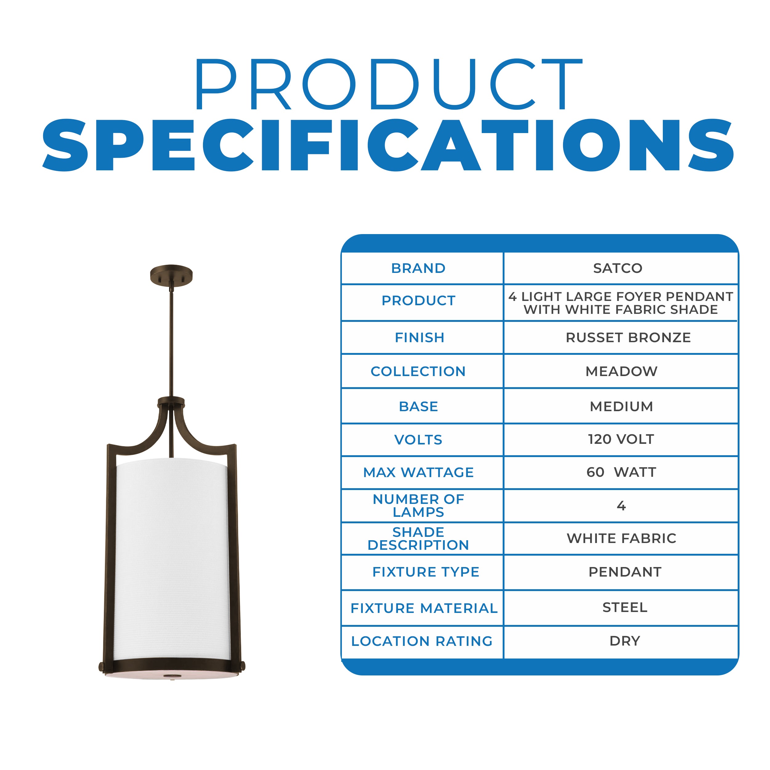 NUVO Lighting 60/5890 Fixtures Meadow - 4 Light, Large Foyer with White Fabric Shade, Russet Bronze Finish, E26-Medium Base, 120 Volt
