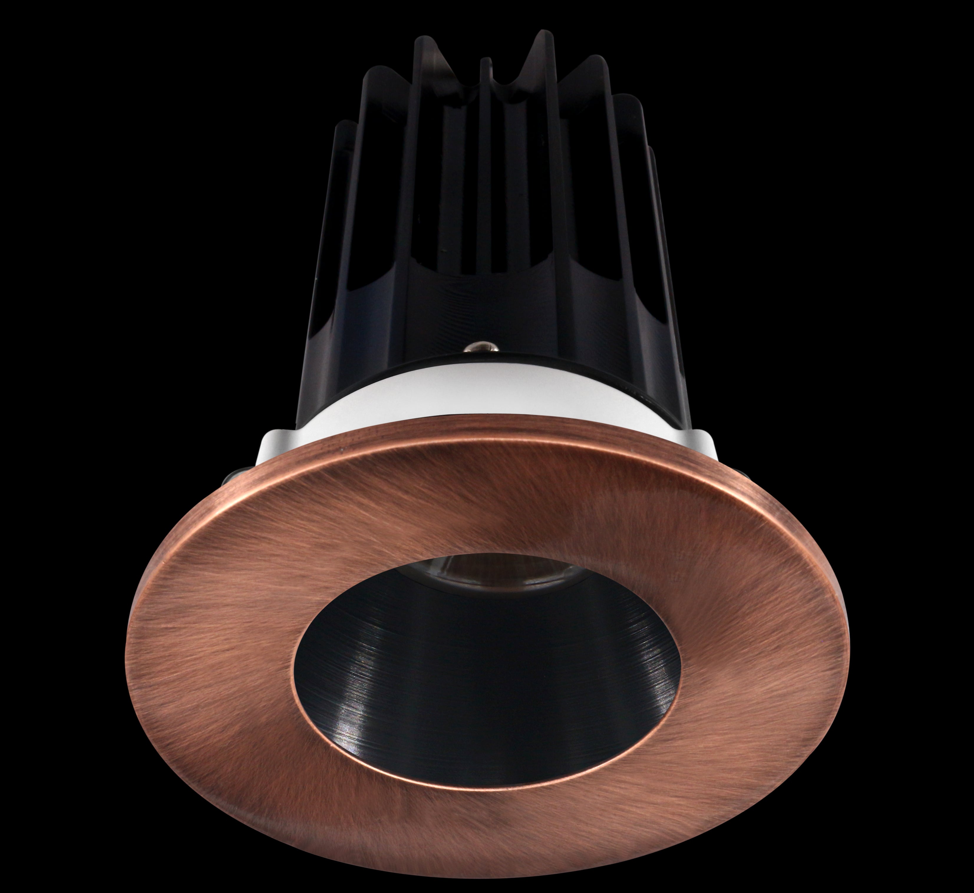 2 Inch Recessed LED Downlight - 8 Watt - 2700 Kelvin - 580 Lumen - Black Reflector - Round Copper Trim - 38 Degree Beam Angle - Type IC Damp - Air-Tight - Energy Star - T24 - CRI 90+