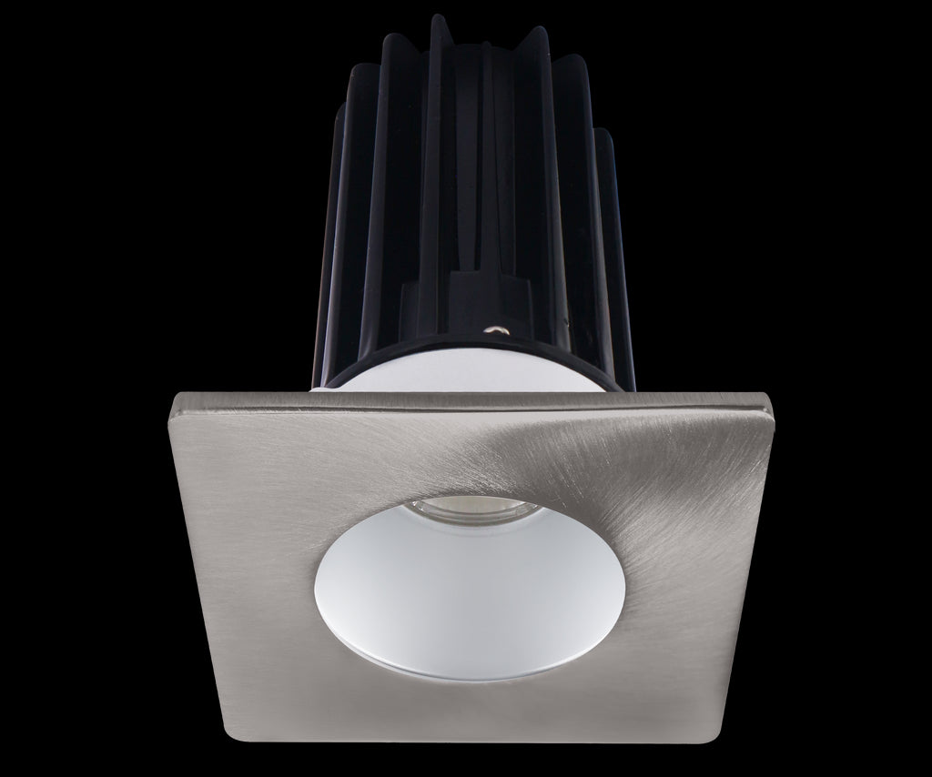 2 Inch Recessed LED Downlight - 8 Watt - 3000 Kelvin - 600 Lumen - Alzak Reflector - Square Brushed Nickel Trim - 38 Degree Beam Angle - Type IC Damp - Air-Tight - Energy Star - T24 - CRI 90+