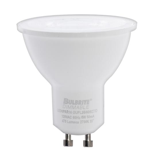 Bulbrite 771404 6 Watt LED PAR16 FLOOD - GU10 Base - 3000 Kelvin - Warm White - 500 Lumens - 120 Volt - 60 Watt Incandescent Equivalent - 80CRI - DIMMABLE