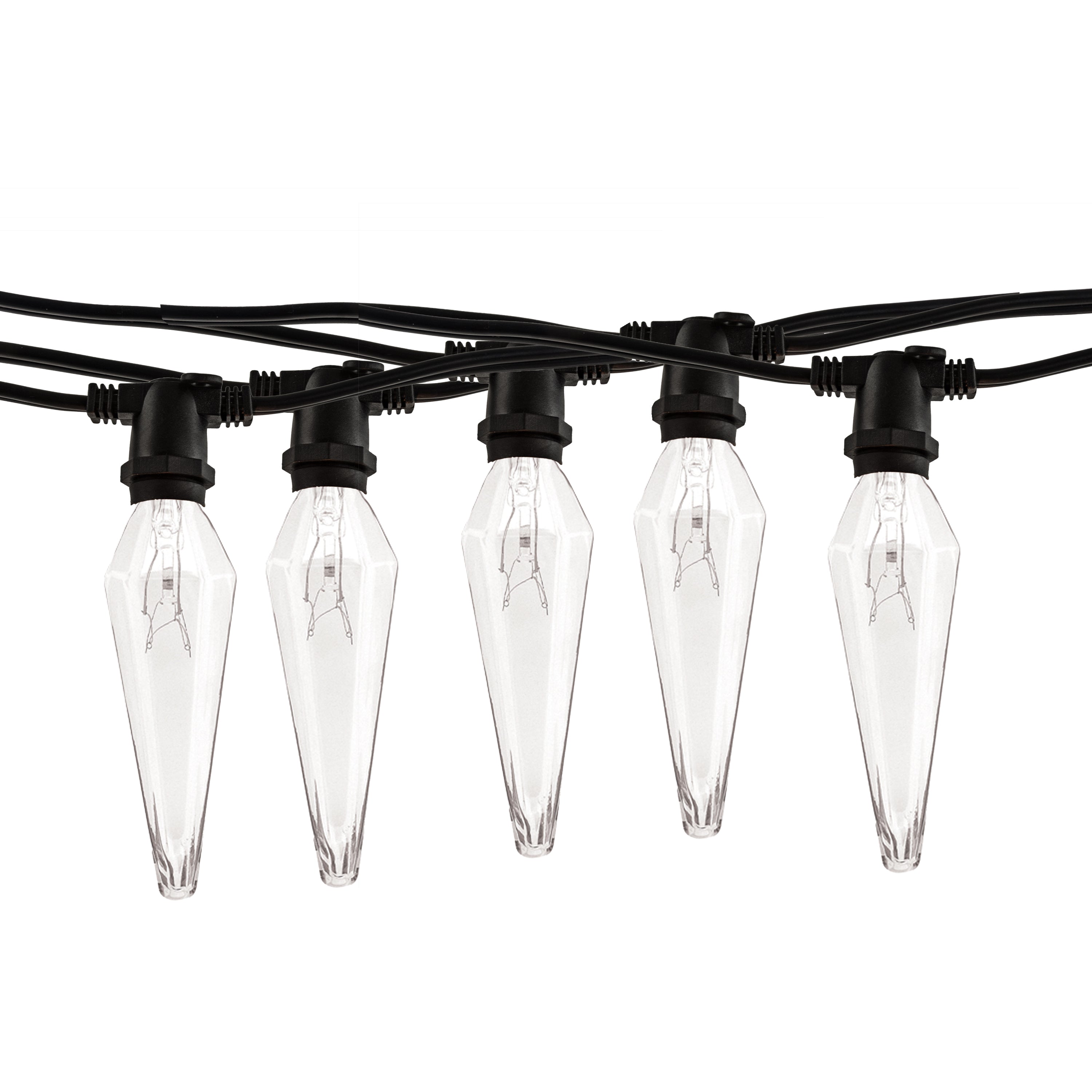 Bulbrite 810151 - 14 ft String Light Kit - 10 Sockets - E12 Base - Black Wire with 25 Watt Prism Amber Finish Lamps - STRING10/E12/BLACK-PRISMKT