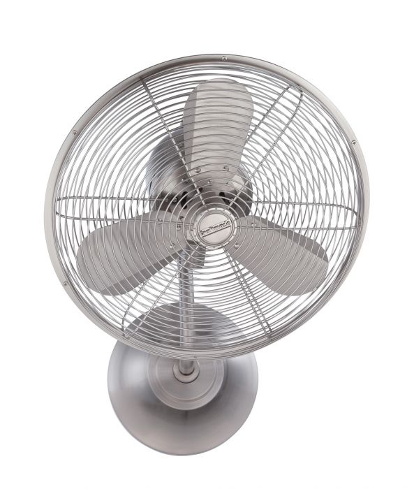 16" Hard-Wired Wall Mount Fan - Brushed Polished Nickel Finish With a heavy-duty, 3-speed oscillating motor and 14" blades, this wall-mounted fan combines the retro style of a table fan with the power and efficiency of a ceiling fan. Finished in your choice of Aged Bronze Textured or Stainless Steel, it includes a Wall Control with 3-speed and Oscillating functions.