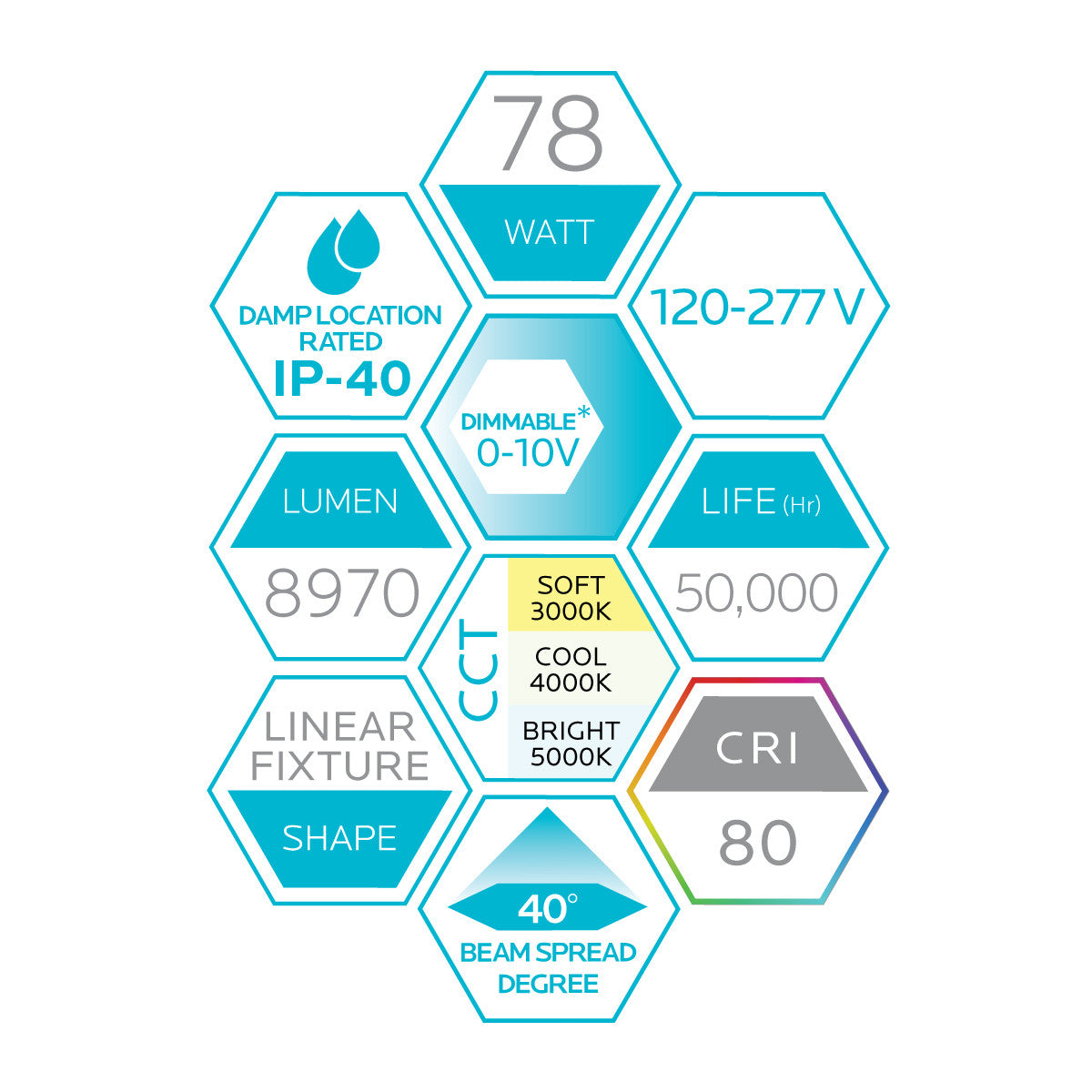 Luxrite LR25167 - 8 Foot Linear LED Fixture - 78 Watt - Lumens - 3 CCT Selectable - 80 CRI - 8970 Lumens
