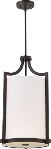 NUVO Lighting 60/5887 Fixtures Meadow - 3 Light, Foyer with White Fabric Shade, Russet Bronze Finish, E26-Medium Base, 120 Volt
