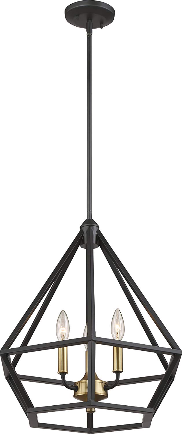 NUVO Lighting 60/6362 Fixtures Orin - 3 Light, Pendant Fixture, Aged Bronze with Brass Accents Finish, E12-Candelabra Base, 120 Volt
