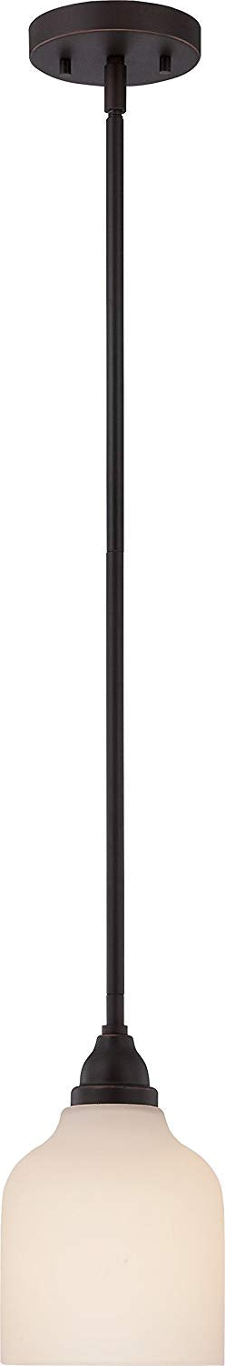 NUVO Lighting 62/392 LED Fixture Kirk - 1 Light, Mini Pendant with Etched Opal Glass, Mahogany Bronze Finish, A19 LED Omni Included, 2700 Kelvin, Warm White, 820 Lumens, GU24 Base, 120 Volt