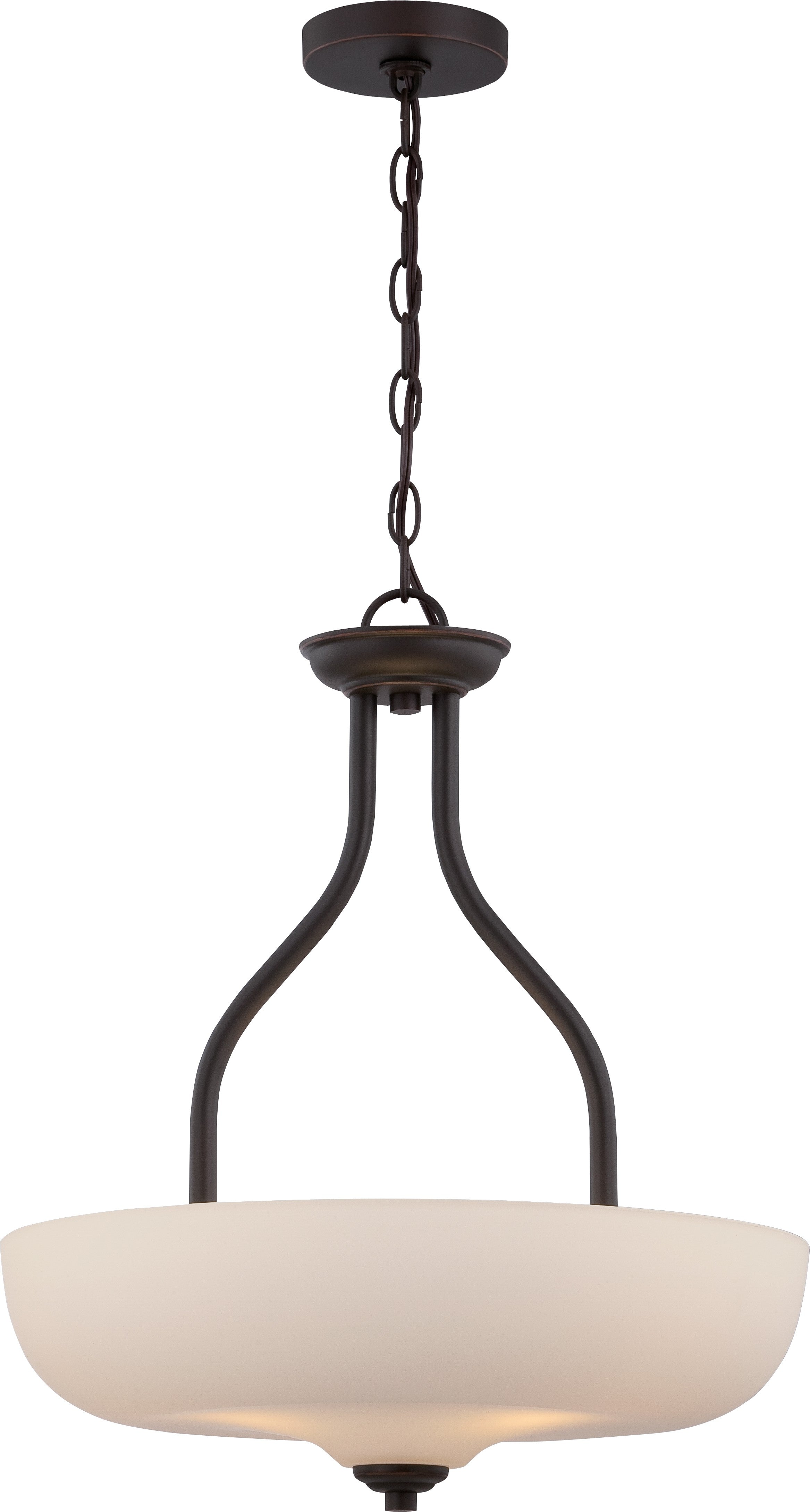 NUVO Lighting 62/395 LED Fixture Kirk - 3 Light, Pendant with Etched Opal Glass, Mahogany Bronze Finish, A19 LED Omni Included, 2700 Kelvin, Warm White, 2460 Lumens, GU24 Base, 120 Volt