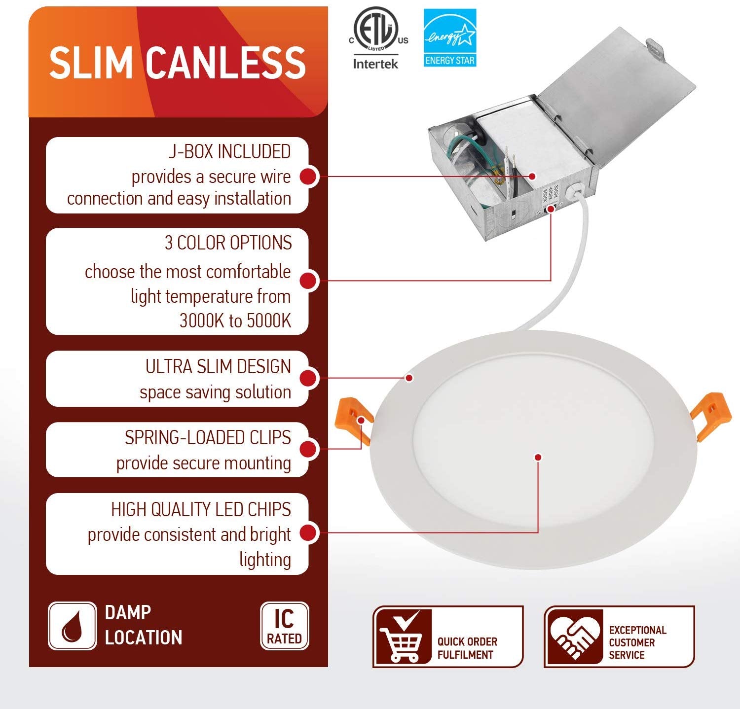 Ostwin OW-LMPJBR-6D15CC-WH - 6 Inch LED Downlight - 15 Watt - 1125 Lumens- 3K-4K-5K Field Adjustable White Finish