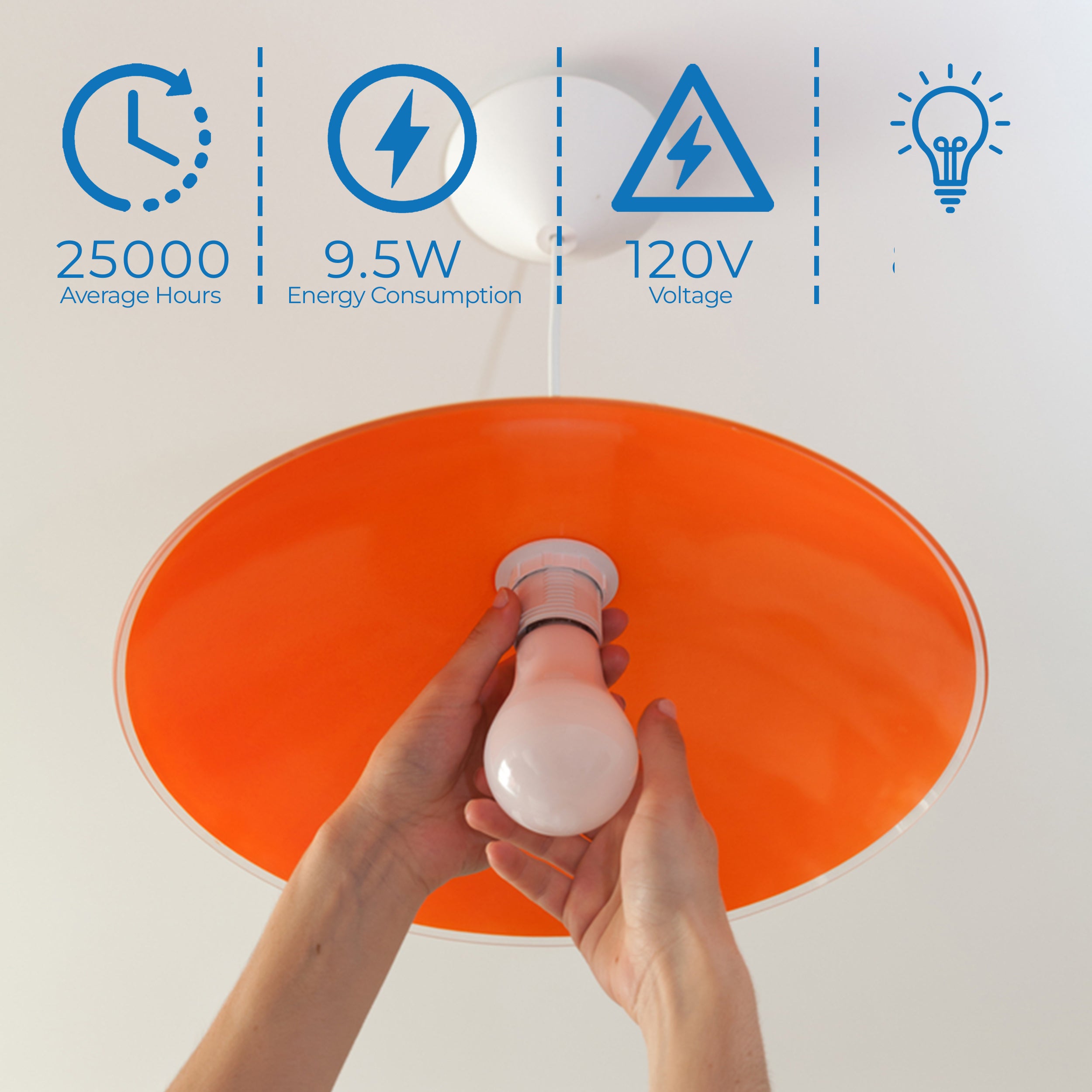 Satco S9699 9.5 Watt LED A19, 220 Degree Beam Spread, 2700 Kelvin, Warm White, 800 Lumens, E26-Medium Base, 120 Volt, 60 Watt Incandescent Equivalent, Dimmable, 25000 Average Rated Hours, 2-Pack