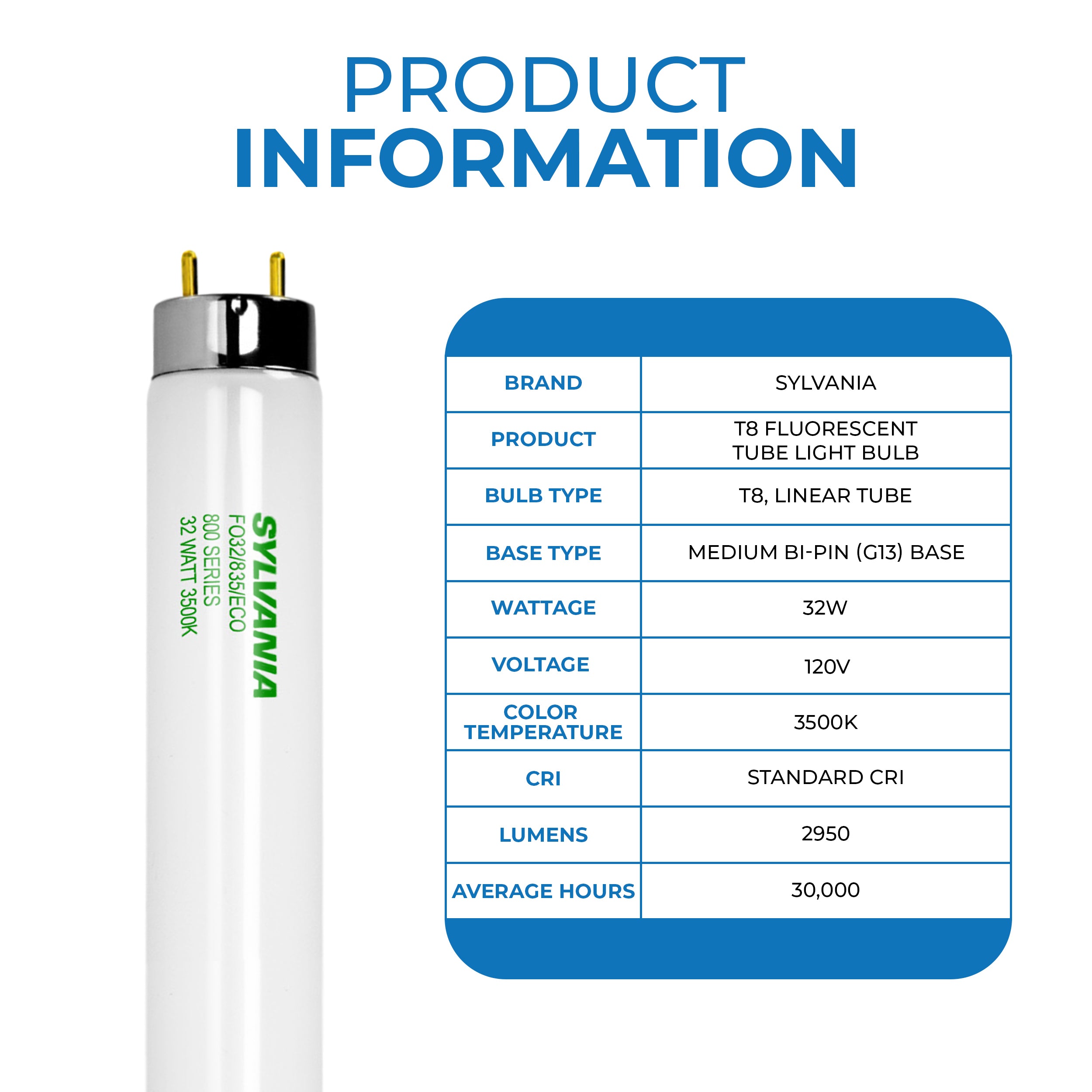 48" T8 Fluorescent Lamp - 32 Watt - 3500 Kelvin - 85 CRI