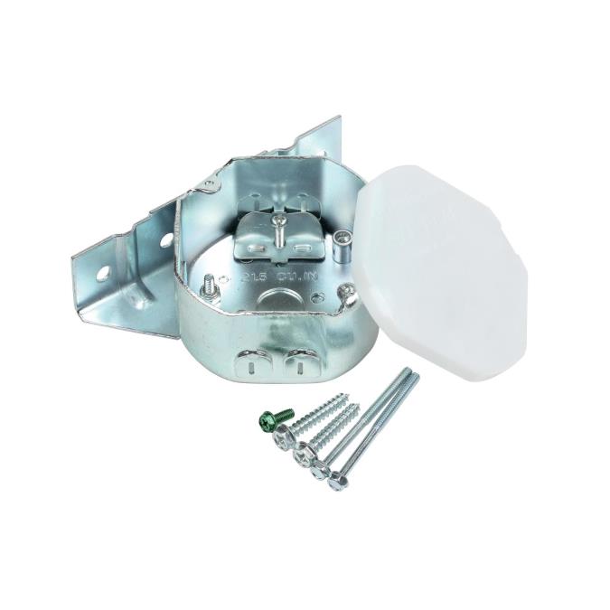 The Sidemount Plus features a heavy-duty, 2-1/8 inch, all-metal electrical box, with 21.5 inch wiring capacity. The box is UL listed to support fans and light fixtures up to 70 pounds. Features dual mounting capability, with 10-24 threads for heavier fans and fixtures, and 8-32 threads for cover plates and lightweight lighting fixtures.