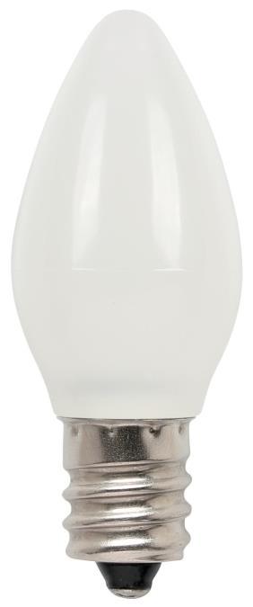 Frost finish, candelabra base, brightness 20 lumens, non-dimmable, damp rated