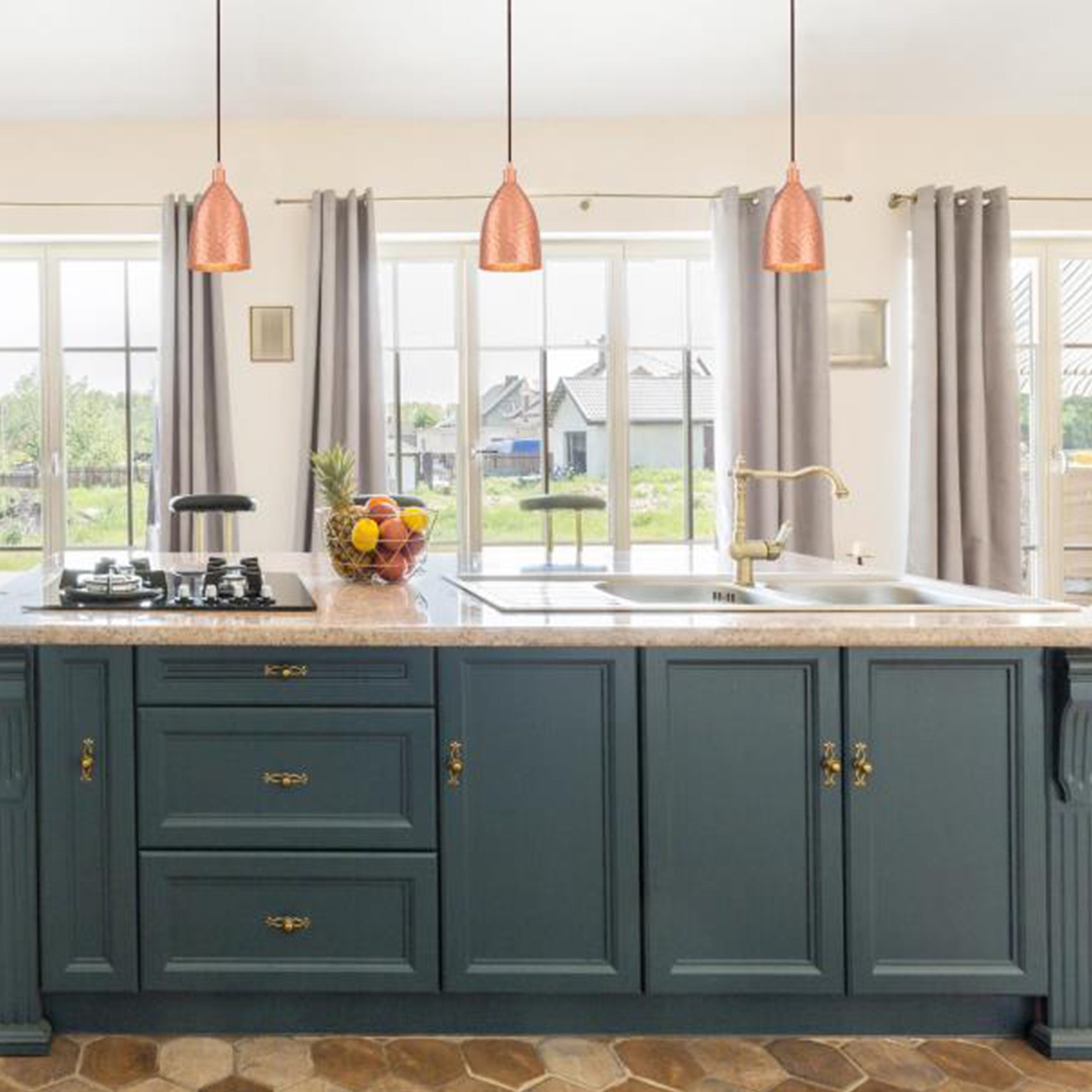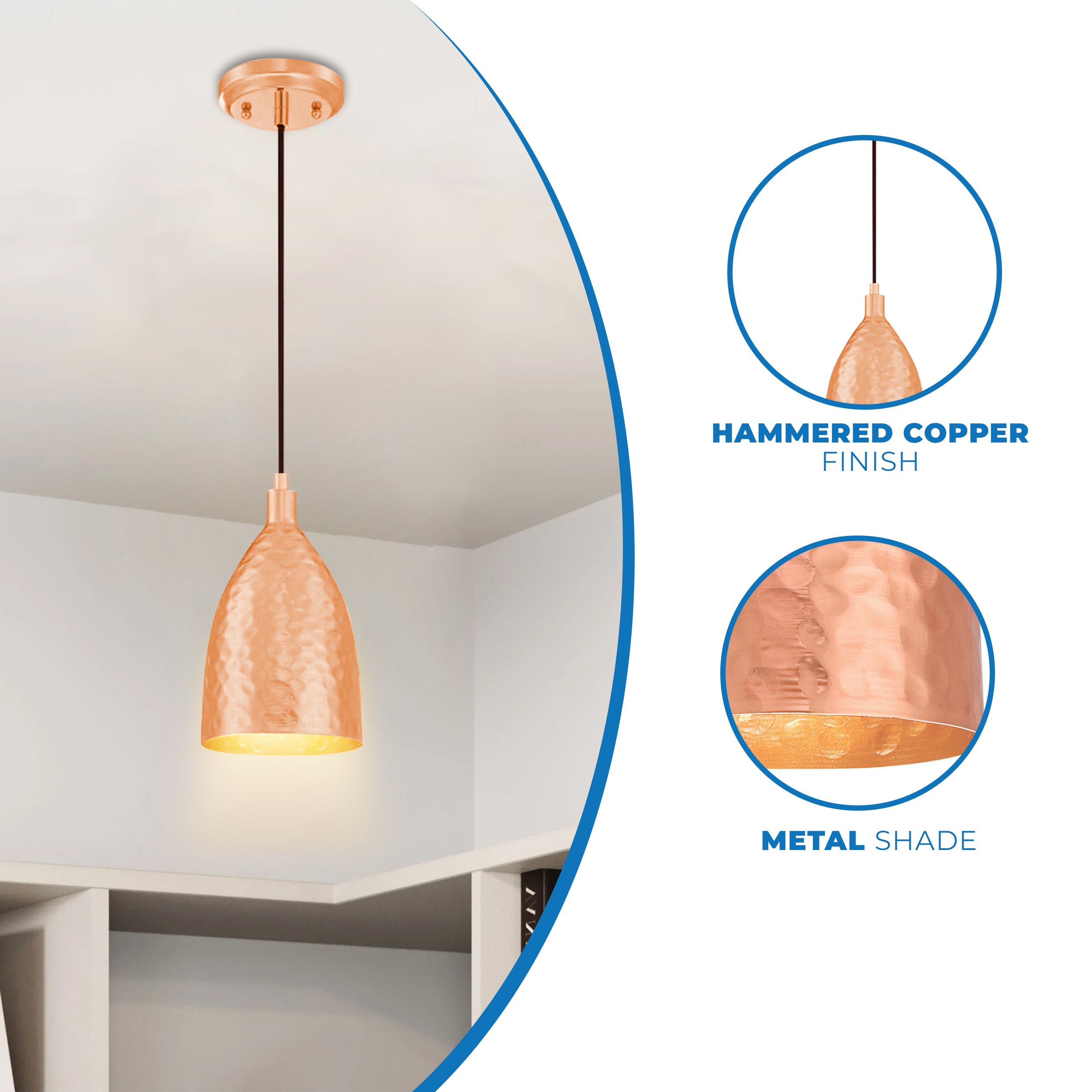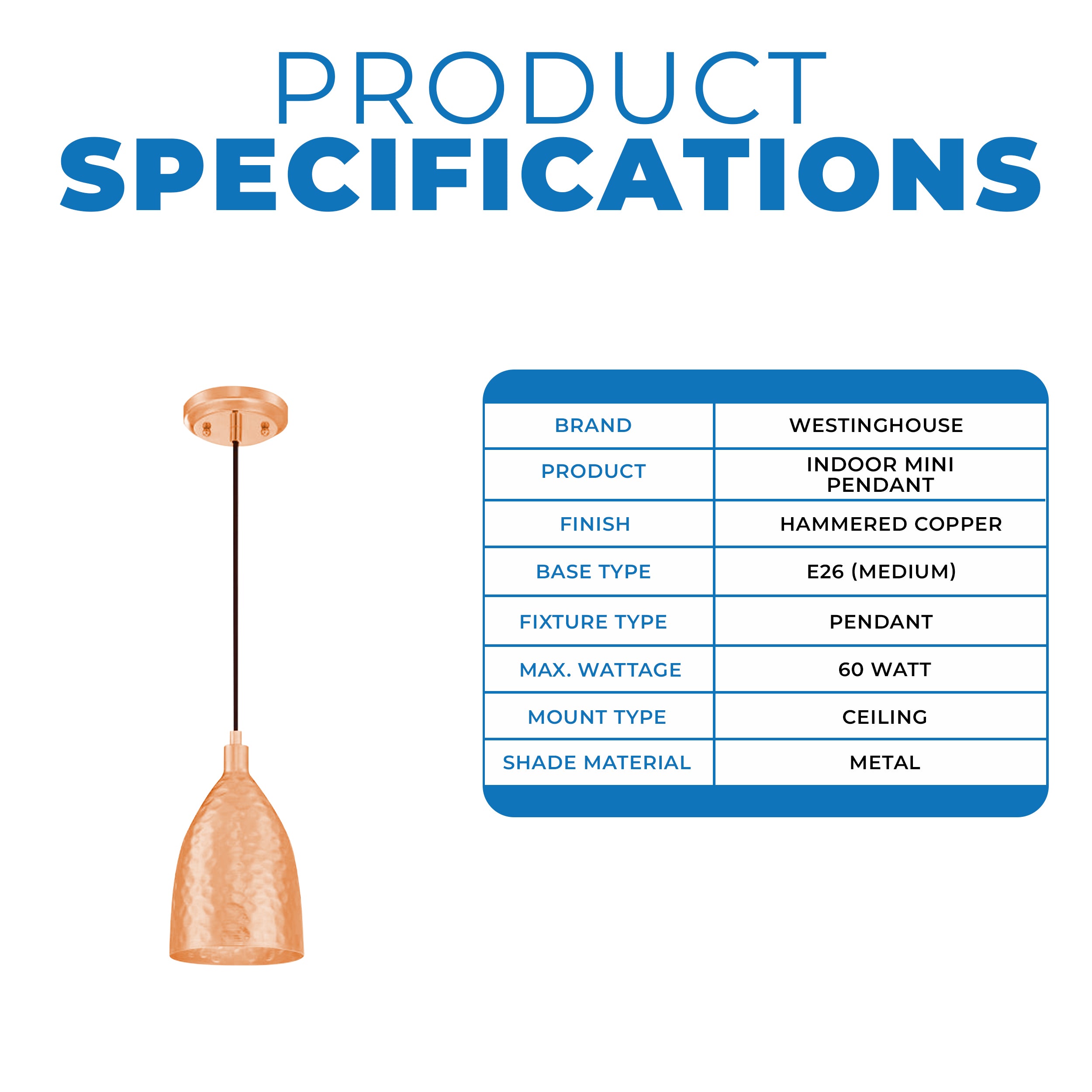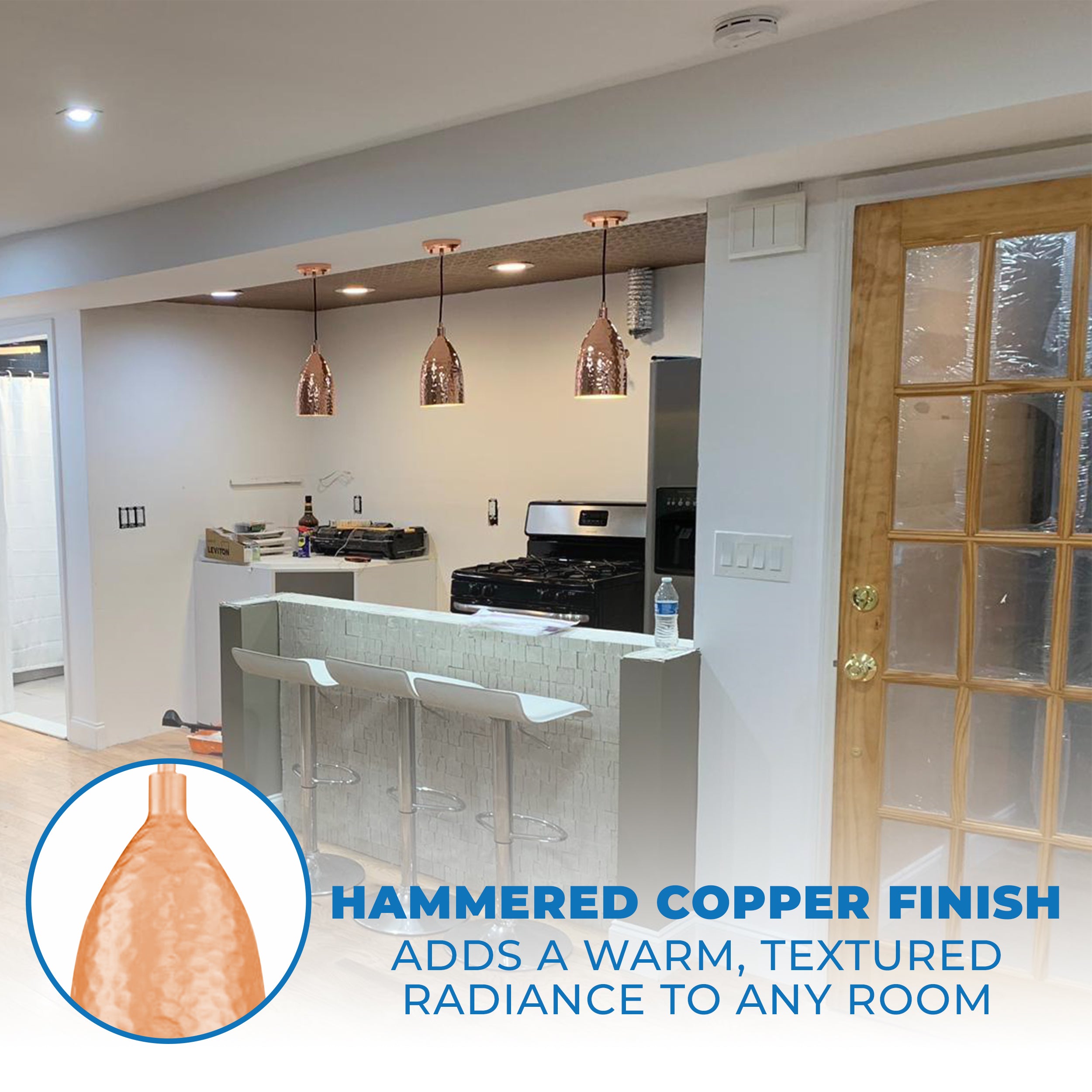 Bring a polished but relaxed look to your home with this contemporary mini pendant. The hammered copper finish adds a warm, textured radiance to any room. For inspired lighting effect, hang in groups of three or four above your kitchen island. Also beautiful on its own, in any space.