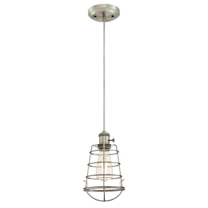 Add a touch of industrial style to your home with this retro mini pendant. Crafted to resemble early 20th century lighting, the brushed nickel mini pendant with braided cord and turn knob has charming vintage appeal. The open metal cage design provides abundant illumination from all angles. Ideal for use with a Westinghouse Timeless vintage inspired incandescent light bulb, or an energy-saving Filament LED.