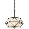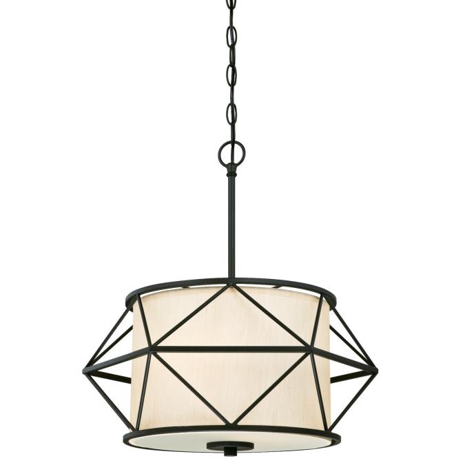This structural lighting design has captivating qualities. Matte black geometric diamonds take on new dimensions as you view the pendant from different angles. Yet, the shade creates a neutral backdrop to the metal forms, allowing warm radiance to shine through.