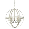 Brushed nickel finish adds a modern touch to this spherical chandelier. Its grand size draws attention to the classic six-light candelabra glowing inside. The beautiful metal orb design creates a feeling of openness, ideal for dining rooms, entryways and open-concept living spaces.