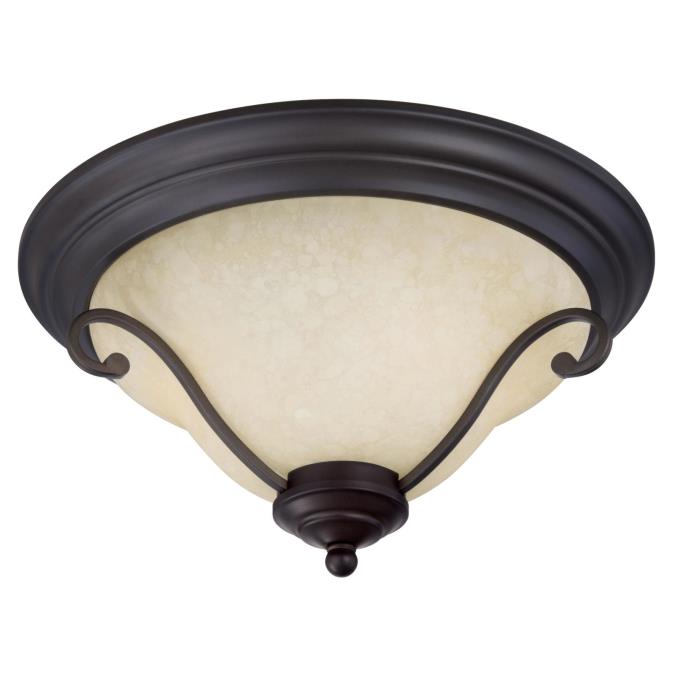 With its charming traditional style, the Callan two-light ceiling fixture will add warmth to any room. The combination of the oil rubbed bronze finish, decorative scrollwork and caramel scavo glass adds a rustic flair to this fixture.