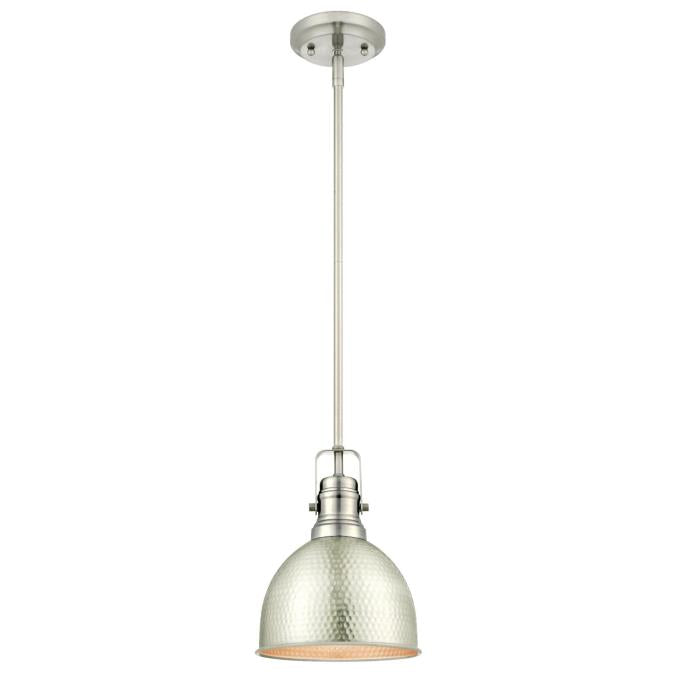 A creative way to add light and textural interest to your home is to incorporate this beautiful dome-shaped mini pendant. Its metallic finish and hammered surface are both reflective and rustic, fitting a variety of design trends.