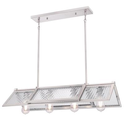 - Featuring long windows of waffle glass, the Finn four-light chandelier offers attractive prismatic illumination