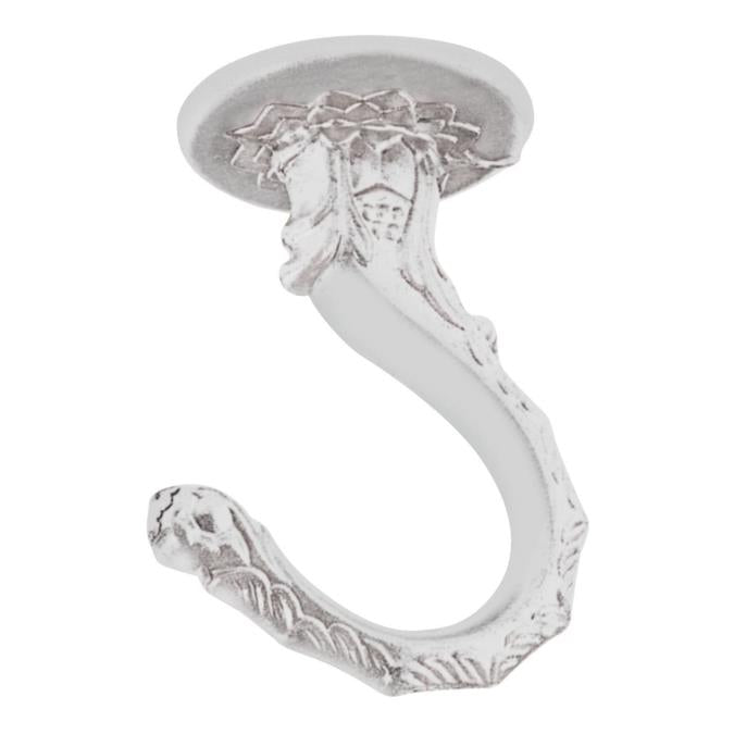Heavy light fixtures will hang securely with this large white finish swag hook. This 2-1/2-inch hook has a 45-pound load rating, so you can hang heavier fixtures and accessories with confidence. The hook comes with the hardware you'll need for installation, and its white finish will easily coordinate with most light fixtures.