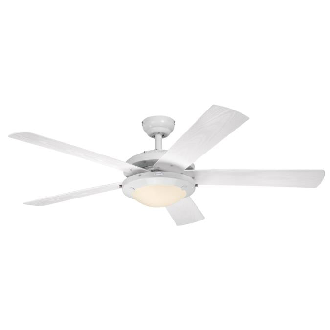 Designed especially for patios, verandahs, and gazebos, the Indoor/Outdoor Comet Ceiling Fan 7200800 brings indoor comfort outdoors. With a white finish, integrated frosted glass light fixture, and white ABS blades, the Comet epitomizes casual transitional style.