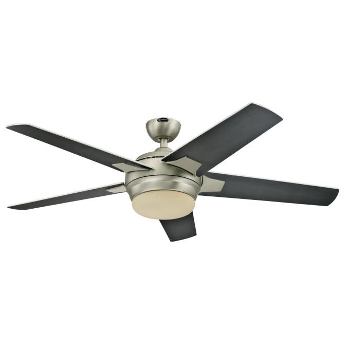 The Bolton ceiling fan 7204000 makes a stunning statement in any transitional or contemporary space. Featuring a sleek brushed aluminum finish, squared-off reversible graphite/silver blades, and an opal frosted glass fixture, this fan offers versatility and energy efficiency. For added efficiency and convenience , this fan includes dimmable LED light bulbs and a remote control.