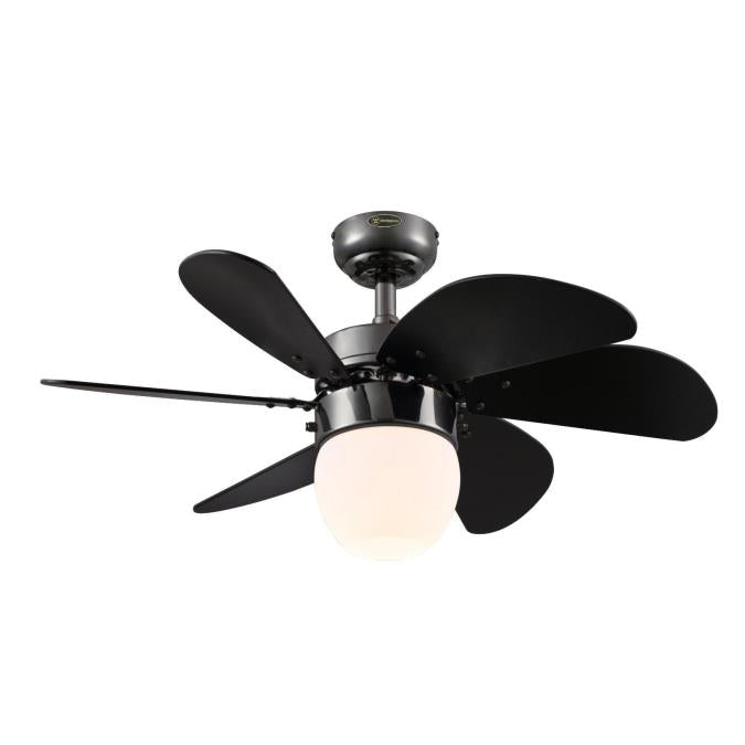 No matter what size room you want to cool, Westinghouse has a ceiling fan in a size and style that you desire. For small rooms that need a daring contemporary look, the Turbo Swirl LED fan has a dramatic gun metal finish, six curved blades and integrated opal frosted glass light. You'll be delighted by the powerful air movement of this 30" ceiling fan.