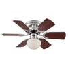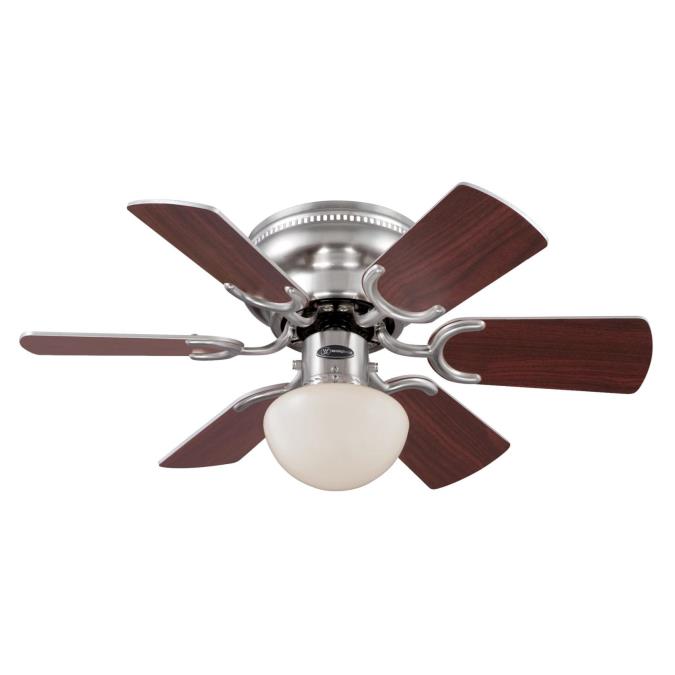 Add the Petite indoor fan to any room and enjoy its classic design details and year-round comfort. The lovely combination of brushed nickel finish, rosewood and light maple blades, will blend well in any decor, from a small kitchen to a child's bedroom. The mushroom light kit with opal glass enhances the ceiling fan's function and style, providing beautiful illumination.