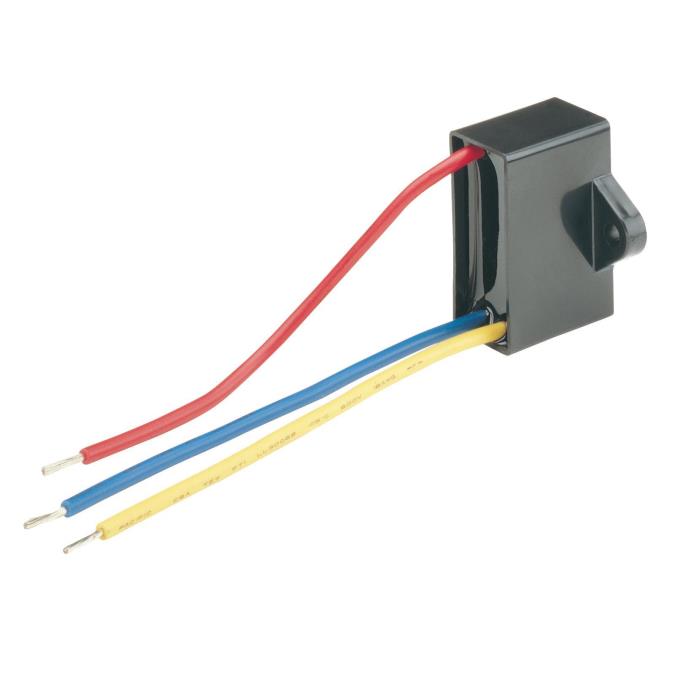 Necessary to turn on the motor of a ceiling fan to make the blades work and produce wind, this 3 MFD and 6.5 MFD fan capacitor is ideal for replacing malfunctioning capacitors. It features a three-wire design for easy installation, 3 MFD and 6.5 MFD rated capacitance for compatible units, and a 150-volt rating for optimal power.
