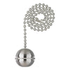 With its simple adornment and smooth finish, this brushed nickel finish beaded ball pull chain goes well with most decors. The brushed nickel finish ball handle is bisected by a beaded accent line for an artistic touch, and fixed to the end of a 12-inch beaded chain. This pull chain is an ideal replacement chain for ceiling fan and lighting fixtures in living rooms, bedrooms, and kitchens.