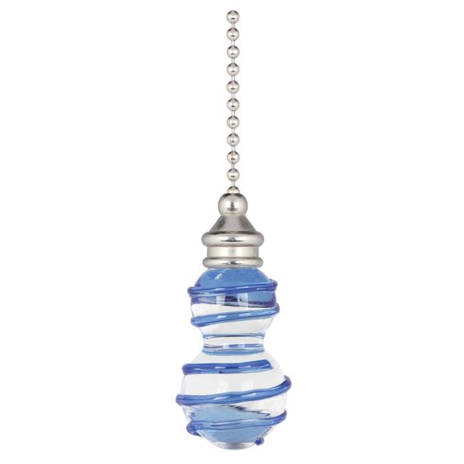This Westinghouse Clear and Blue Drizzle Glass Pull Chain with its fun, artful character, adds a colorful accent to a fan or light fixture. The clear glass with a blue drizzle design is fixed to the end of a 12-inch brushed nickel beaded chain. An ideal replacement for broken pull chains and a perfect decorative accent for any existing ceiling fan or light fixture.